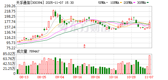 责任编辑:小浪快报 进一步统计,近3个月内该股累计发生6笔大宗交易,合计成交金额为1765.85万元。该股近5个交易日累 计上涨10.75%,主力资金合计净流入18.03亿元。 炒股就看金麒麟分析师研报,权威,专业,及时,全面,助您挖掘潜力主题机会! 11月7日,天孚通信收涨12.67%,收盘价为175.00元,发生1笔大宗交易,合计成交量1.2万股,成交金 额210万元。 第1笔成交价格为175.00元,成交1.20万股,成交金额210.00万元,溢价率为0.00%,买方营业部为中国 国际金融股份有限公司深圳分公司,卖方营业部为机构专用。 ...