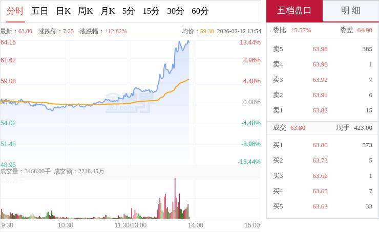 交易所数据显示,2月12日,昆仑万维开盘略低于前收盘价,早盘短暂冲高后回落,随即在区间内震荡调 整。午后开盘逐步企稳回升,13:25起动能显著增强,开启强劲拉升行情,价格快速攀升,相继突破多 个整数关口,最高触及64.15,之后在高位维持震荡整理,截至13:51走势强劲,午后的拉升成为当日截 至目前的核心特征。 据公司公告,2025年其收入预计同比增长超过40%,海外收入占比进一步提升,同时在市场推广和研发 方面持续加大投入。中国银河指出,2026年AI应用将从可用转向好用阶段,昆仑万维作为大模型及MaaS 厂商之一,受到领域内重点关注。 注:本文由AI根据市场公开信息生成,不构成投资建议,投资有风险,入市需谨慎。 来源:市场资讯 | 分时 五日 日K 周K 月K 5分 15分 30分 60分 | | | 五档盘口 | | 明细 | | --- | --- | --- | --- | --- | --- | | 最新:63.80 涨跌额:7.25 涨跌幅:+12.82% | | 均价:59.38 2026-02-12 13:54 | 委比 +5.57% | | 委差 64.90 | | 64.15 | | 1 ...