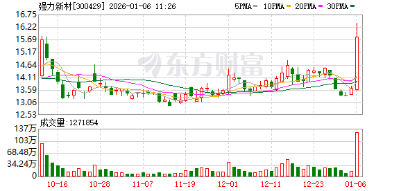 数据宝统计,截至10:10,强力新材成交额16.43亿元,创2025年7月2日以来新高。最新股价上涨 20.01%,换手率25.95%。上一交易日该股全天成交额为2.19亿元。(数据宝) (文章来源:证券时报网) ...