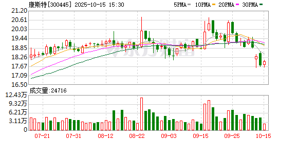 Core Viewpoint - The stock price of 康斯特 has experienced a decline recently, with a year-to-date increase of 7.79% but a significant drop of 7.48% in the last five trading days and 9.40% over the last 20 days [2] Company Overview - 康斯特, established on September 20, 2004, and listed on April 24, 2015, is located in Haidian District, Beijing. The company specializes in the research, production, and sales of digital testing instruments and auxiliary testing services [2] - The revenue composition of 康斯特 includes: digital pressure testing products (75.44%), temperature and humidity testing products (17.22%), process signal testing products (6.14%), and others (1.20%) [2] - The company belongs to the machinery equipment sector, specifically in general equipment and instrumentation [2] Financial Performance - For the first half of 2025, 康斯特 reported a revenue of 246 million yuan, representing a year-on-year growth of 3.76%. However, the net profit attributable to shareholders decreased by 7.71% to approximately 54.13 million yuan [2] - Since its A-share listing, 康斯特 has distributed a total of 146 million yuan in dividends, with 50.98 million yuan distributed over the past three years [3] Shareholder Information - As of September 30, 2025, 康斯特 had 12,500 shareholders, an increase of 3.75% from the previous period. The average number of circulating shares per shareholder decreased by 3.61% to 11,331 shares [2] - Among the top ten circulating shareholders, 华夏稳增混合 (519029) holds 2.29 million shares, with no change in the number of shares held compared to the previous period [3] Market Activity - On October 17, 康斯特's stock price fell by 2.02%, trading at 17.44 yuan per share with a total transaction volume of approximately 26.39 million yuan and a turnover rate of 1.06%. The total market capitalization is around 3.705 billion yuan [1] - The net outflow of main funds was 3.67 million yuan, with significant selling pressure observed in large orders [1]