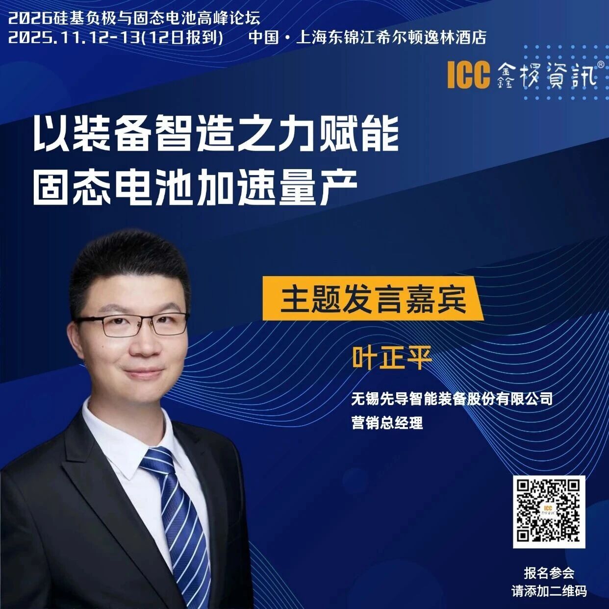 邀请函 时间 11月12-13日 关注公众号,点击公众号主页右上角" ··· ",设置星标 "⭐" ,关注 鑫椤锂电 资讯~ 2026硅基负极与固态电池 高峰论坛 地点 中国·上海 发言嘉宾 I C C S I N O -主办- 鑫椤资讯 -生态合作伙伴- 杉杉科技 无锡先导智能装备股份有限公司叶正平 就 以装备智造之力赋能固态电池加速量产 议题,在 鑫椤资讯·11月12- 13日·上海· 东锦江希尔顿逸林酒店 举办" 2026硅基负极与固态电池高峰论坛 做主题演讲。 会议日程: 11月11日 上海杉杉企业参观活动 11月12日 会议报到及招待晚宴 11月13日 全天会议 备注: 上海杉杉企业参观活动 以及 招待晚宴, 仅面向 已缴纳会议费 的客户开放, 本次活动为行业交流活 动,不涉及任何商业推广。 会议议题: 0 1 0 2 参会费用: 参会费用: 2800元/位 注:限时免费参会(不含餐),名额仅限200人, 报完为止,先到先得! 添加文末小编微信申请~ 企业赞助参会: 赞助方案详询主办方 会议报名: ▼ 0 4 13248122922 ( 微信同) 0 3 念校 往届会议 : 0 6 ● IH a i ...