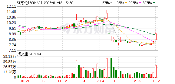股市必读:ST惠伦(300460)1月12日主力资金净流入1862.08万元