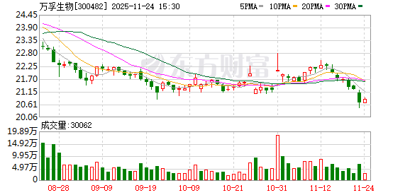 截至9月30日,万孚生物股东户数4.24万,较上期减少5.59%;人均流通股10160股,较上期增加5.94%。 2025年1月-9月,万孚生物实现营业收入16.90亿元,同比减少22.52%;归母净利润1.34亿元,同比减少 69.32%。 分红方面,万孚生物A股上市后累计派现12.13亿元。近三年,累计派现6.01亿元。 资料显示,广州万孚生物技术股份有限公司位于广东省广州市黄埔区科学城荔枝山路8号,成立日期 1992年11月13日,上市日期2015年6月30日,公司主营业务涉及快速诊断试剂、快速检测仪器等POCT 相关产品的研发、生产与销售。主营业务收入构成为:慢性疾病检测45.93%,传染病检测30.93%,毒 品(药物滥用)检测11.82%,妊娠及优生优育检测11.27%,其他(补充)0.04%。 万孚生物所属申万行业为:医药生物-医疗器械-体外诊断。所属概念板块包括:基因测序、抗流感、幽 门螺杆概念、互联医疗、肝炎治疗等。 11月19日,万孚生物盘中下跌2.08%,截至13:00,报21.23元/股,成交6821.89万元,换手率0.74%,总 市值99.37亿元。 资金流向方面,主力资金净流出1 ...