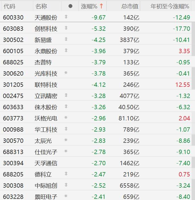 沪指1月19日上涨0.29%,申万所属行业中,今日上涨的有23个,涨幅居前的行业为基础化工、石油石 化,涨幅分别为2.70%、2.08%。跌幅居前的行业为计算机、通信,跌幅分别为1.55%、0.96%。通信行 业位居今日跌幅榜第二。 主力资金净流出的行业有18个,电子行业主力资金净流出规模居首,全天净流出资金146.53亿元,其次 是计算机行业,净流出资金为107.50亿元,净流出资金较多的还有通信、传媒、医药生物等行业。 300213 佳讯飞鸿 0.51 4.51 811.56 通信行业今日下跌0.96%,全天主力资金净流出75.11亿元,该行业所属的个股共124只,今日上涨的有 43只;下跌的有80只,跌停的有4只。以资金流向数据进行统计,该行业资金净流入的个股有38只,其 中,净流入资金超3000万元的有7只,净流入资金居首的是新易盛,今日净流入资金8.30亿元,紧随其 后的是长飞光纤、亨通光电,净流入资金分别为3.49亿元、9124.32万元。通信行业资金净流出个股中, 资金净流出超亿元的有26只,净流出资金居前的有中际旭创、润泽科技、剑桥科技,净流出资金分别为 10.93亿元、9.10亿元、8.11 ...
