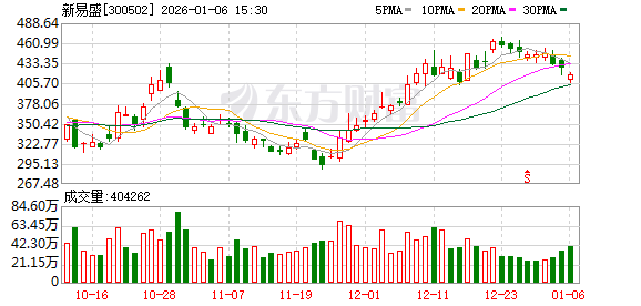 新易盛1月6日现2笔大宗交易 总成交金额1586.94万元 其中机构买入1002.12万元 溢价率为-18.09%