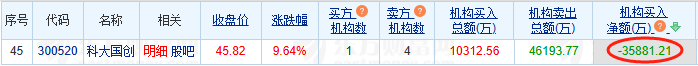 科大国创涨9.64% 机构净卖出3.59亿元