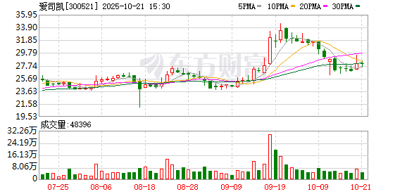 爱司凯:54.50万股限售股将于10月23日上市流通