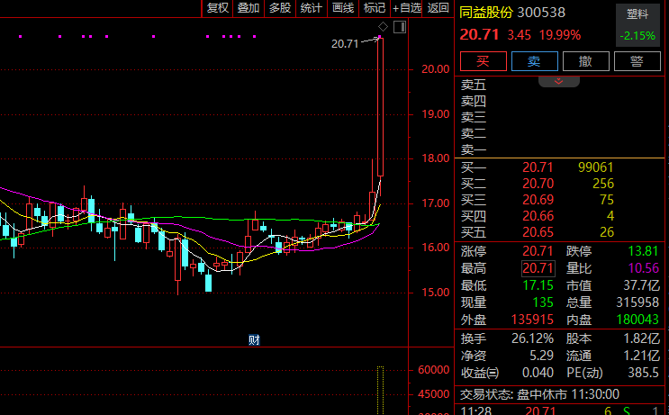 仅4分钟,300538直线20%涨停,A股这一赛道突然爆发