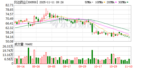 贝达药业今日大宗交易折价成交6.9万股,成交额300.7万元