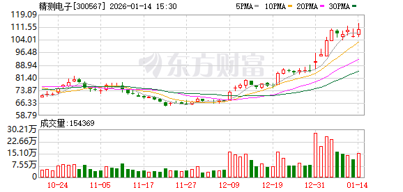 1月14日,精测电子涨5%,截至发稿,报111.30元/股,成交5.09亿元,换手率2.06%,总市值311.36亿 元。 资料显示,武汉精测电子集团股份有限公司位于武汉市东湖新技术开发区佛祖岭四路2号,成立日期 2006年4月20日,上市日期2016年11月22日,公司主营业务涉及显示、半导体及新能源检测系统的研 发、生产与销售。主营业务收入构成为:显示48.56%,半导体40.74%,新能源8.67%,其他(补 充)2.03%。 从基金十大重仓股角度 数据显示,同泰基金旗下1只基金重仓精测电子。同泰数字经济股票A(012696)四季度持有股数11.99 万股,占基金净值比例为3.75%,位居第十大重仓股。根据测算,今日浮盈赚取约63.55万元。 同泰数字经济股票A(012696)成立日期2021年7月26日,最新规模5528.24万。今年以来收益6.18%, 同类排名2087/5520;近一年收益99.51%,同类排名123/4203;成立以来收益25.77%。 同泰数字经济股票A(012696)基金经理为陈宗超。 截至发稿,陈宗超累计任职时间4年173天,现任基金资产总规模5.18亿元,任职期间最佳基金 ...