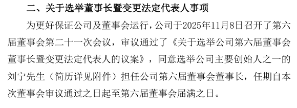 Core Points - The company announced the convening of the second extraordinary general meeting of shareholders for 2025 on November 7, 2025, to elect He Fei as a non-independent director of the fifth board of directors [1] - On the same day, the company held the thirteenth meeting of the fifth board of directors, where He Fei was elected as the new chairman, with a term starting from the date of approval by the board until the end of the current board's term [1]