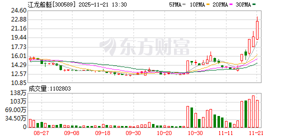 A股军工股午后进一步拉升,江龙船艇20CM涨停