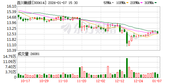 特别提示: 1."百畅转债"(债券代码:123175)转股期为2023年8月28日至2029年2月21 日;最新的转股价格为20.40元/股。 | 证券代码:300614 | 证券简称:百川畅银 公告编号:2026-001 | | --- | --- | | 债券代码:123175 | 债券简称:百畅转债 | 本公司及董事会全体成员保证信息披露的内容真实、准确、完整,没有虚 假记载、误导性陈述或重大遗漏。 2.2025年第四季度,共有1,000张"百畅转债"(票面金额100,000.00元人民币) 完成转股,合计转成4,901股"百川畅银"(股票代码:300614)股票。 3.截至2025年第四季度末,公司剩余可转债为4,198,713张,剩余票面总金额为 419,871,300元。 根据《深圳证券交易所创业板股票上市规则》、《深圳证券交易所上市公司 自律监管指引第15号——可转换公司债券》的有关规定,河南百川畅银环保能源 股份有限公司(以下简称"公司")现将2025年第四季度可转换公司债券(以下 简称"可转债")转股及公司股份变动的情况公告如下: 一、可转债发行上市概况 (一)可转债发行情况 经中国证券监督 ...