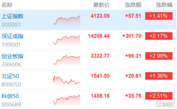 A股收评:指数齐涨!沪指重返4100点,AI应用、CPO概念爆发
