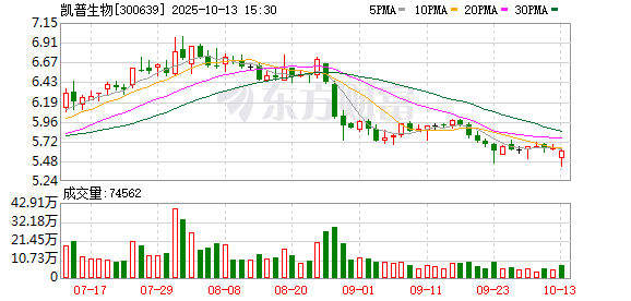 凯普生物涨2.15%,成交额2191.22万元,主力资金净流出53.80万元