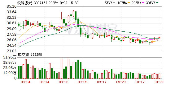 锐科激光前三季度营收25.06亿元同比增6.67%,归母净利润1.23亿元同比增2.49%,毛利率下降7.19个百分点