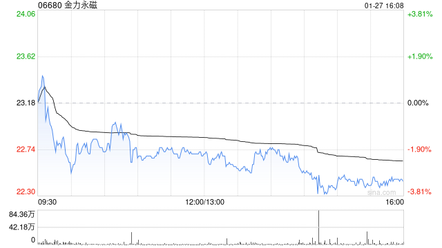 港股金力永磁涨超4%
