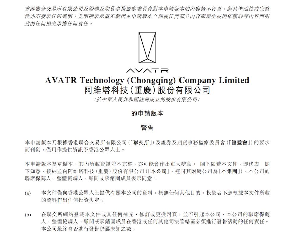 阿维塔递表港交所 三强携手打造智能电动车行业新标杆
