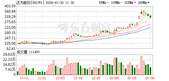 1月29日,光伏设备龙头迈为股份(300751.SZ)市值蒸发,跌下千亿宝座。截至收盘报收325.73元/股, 总市值910.11亿元。 就在1月27日,迈为股份股价创下362.5元的历史新高,总市值突破千亿元,达到1013亿元,成为继阳光 电源、隆基绿能和特变电工之后,光伏行业第四家千亿市值企业。然而,这一光环还没维持几天,又丢 了。 值得注意的是,迈为股份股价自2025年6月以来累计涨幅超400%,动态市盈率曾达121倍,远高于行业 水平。去年11月25日,迈为股份股价仅为94.01元/股,此后,当市场传言,迈为股份拿到了SpaceX光伏 设备订单,其股价开始走高。 到了今年1月9日,又有市场消息称,SpaceX正式签单采购异质结电池生产线,金额约5亿美元,对应约 7GW年产能。受上述消息影响,该公司股价开挂。叠加太空光伏概念兴起,迈为股份股票于 1月22日、 23 日和 26 日连续三个交易日收盘价格涨幅偏离值,累计涨幅超过30%,顺势突破千亿市值。 业绩面上,迈为股份自上市以来业绩一直呈增长趋势,2020年至2024年公司的营收分别为22.85亿元、 30.95亿元、41.48亿元、80.89亿元、9 ...