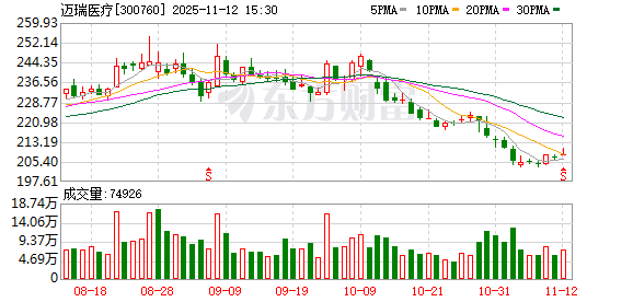 迈瑞医疗11月12日大宗交易成交324.28万元