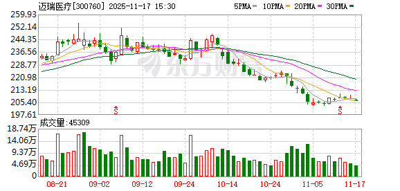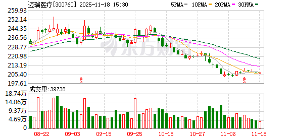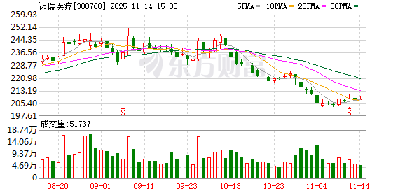 截至2025年11月14日收盘,迈瑞医疗(300760)报收于207.7元,下跌0.24%,换手率0.43%,成交量5.17万 手,成交额10.8亿元。 当日关注点 交易信息汇总资金流向 11月14日主力资金净流出646.51万元;游资资金净流入483.43万元;散户资金净流入163.08万元。 大宗交易 投资者: 联影医疗去年的研发投入占收入比为17%,国外如直觉外科为13.5%,世界排名第十的波士顿 科学为11%,其它友商基本都在10%以上,公司做为医疗高科技领域的追赶者,想要5年内冲进世界前 十,困难重重,不加大研发投入是根本不可能的,目前10%左右的研发投入是否太少了,公司是有进一 步加大研发投入的计划? 董秘: 您好,谢谢关注。迈瑞是全球领先、创新驱动的世界级医疗器械企业及医疗数智化引领者。我 们始终坚持以研发创新为核心驱动力,持续加大投入,依托深厚的技术实力以及对临床需求的深刻洞 察,不断引领并推出契合市场的前沿产品。公司坚持研发高投入,即使在营收规模快速增长的情况下, 依然坚持将每年营收的约10%投入研发,研发投入比例和规模均在医疗器械企业中处于领先地位。截至 2025年三季度末,公司自2018 ...