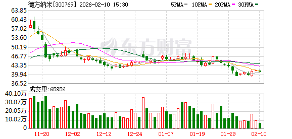 德方纳米在投资者互动平台回应了关于与华为合作4680圆柱固态电池的进展问题,公司表示其客户主要 为锂电池制造企业,未直接确认具体合作细节。这一回应避免了市场对未公开信息的过度猜测,但凸显 了公司在固态电池等前沿领域的产业关联性。 以上内容基于公开资料整理,不构成投资建议。 经济观察网近7天,德方纳米(300769)股价呈现震荡走势。截至最新数据,股价报41.18元,当日微涨 0.10%,5日累计涨幅为3.86%,但20日累计跌幅为10.71%。期间振幅达7.13%,成交活跃度波动较大, 单日成交金额最高达6.85亿元。资金流向方面,主力资金有净流入,但整体市场情绪仍受行业竞争和业 绩压力影响。 近期事件 ...