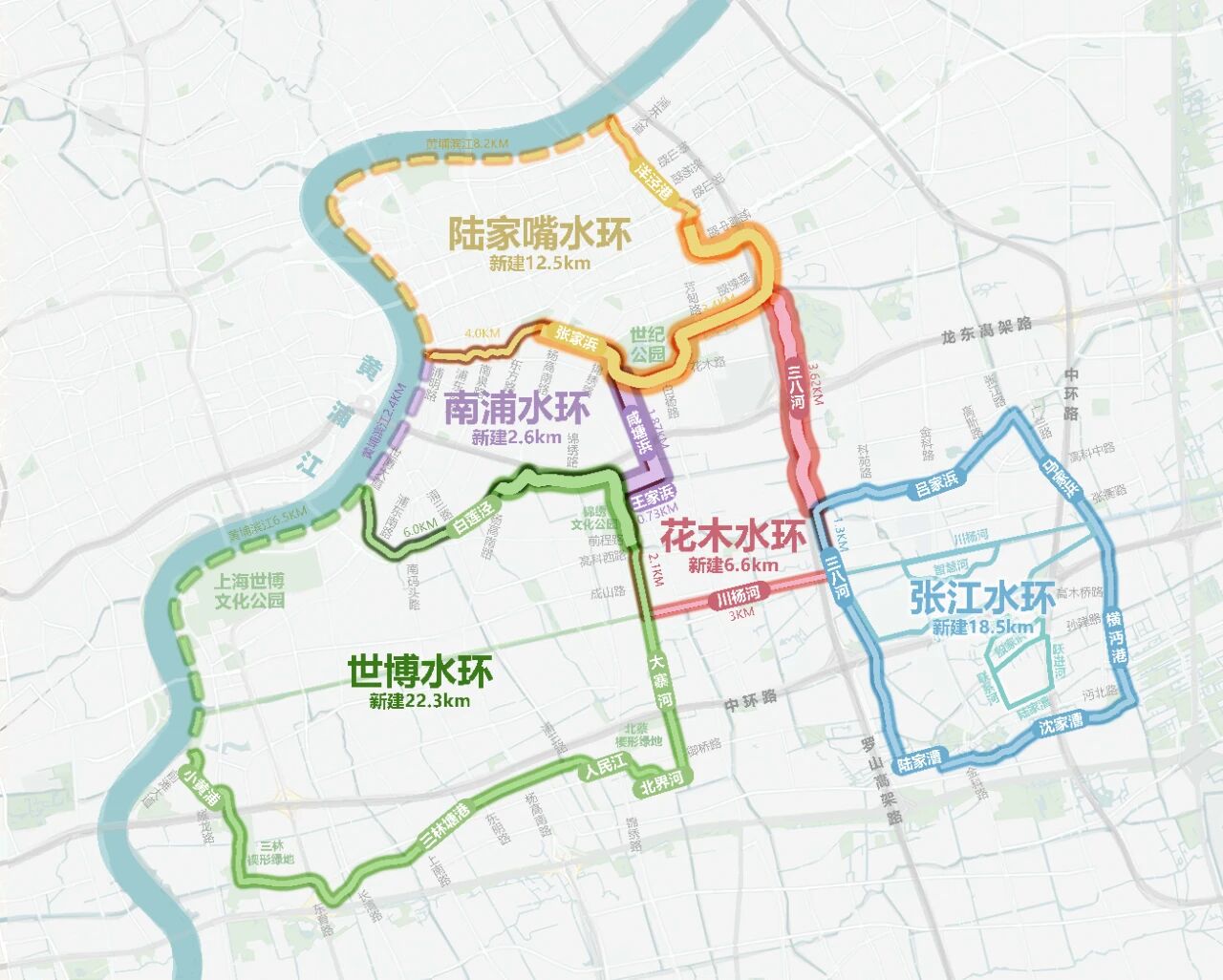浦东五环规划图。 水,是城市文明的起源,亦是现代都市活力的源泉。上海市浦东新区推进的"五环"水脉建设,突破传统水利工程局限,构建起融合生态、经济、文化、社会 与科技的滨水空间综合治理模式,为超大城市高质量发展探索可复制、可推广的新路径。 从"城市治水"到"水治城市"的跃迁 作为国家战略核心承载区和社会主义现代化建设引领区,浦东新区在上海市"一江一河"滨水岸线贯通成效的基础上,聚焦滨水空间价值深度重塑。 数据显示,浦东新区拥有河湖14769条段,水面率达11.47%,为滨水治理提供了优越的自然本底。但过去滨水区被老旧小区、厂区"切割",形成"堵点""断 带",潜在价值未能充分释放。 为此,浦东新区提出从"城市治水"到"水治城市"的治理跃迁,治水成为激活城市发展的战略支点。"五环"水脉主动对接市级及浦东新区国土空间等上位规 划,推动城市空间从单一功能向复合多元转变,实现"水、城、人"深度融合。 张江水环(创新策源环)是海派创新文化灵感表达。以"生态赋能科创"为魂,规划融合人工智能等前沿科技的"产业+城市"项目,凭借优质滨水生态吸引全 球人才,融合"科创奋斗精神"与"滨水漫生活",以公共艺术与科技融合为标杆,彰显海 ...