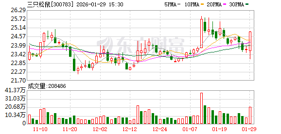 三只松鼠(300783.SZ):预计2025年净利润同比下降57.08%-66.89%