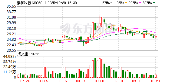 泰和科技:截至2025年10月20日,公司共有股东24525户