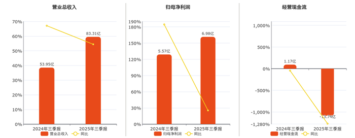Core Viewpoint - The company reported significant growth in revenue and net profit for the first three quarters of 2025, indicating strong operational performance and financial health [1] Financial Performance - The company's operating revenue for the first three quarters reached 8.331 billion yuan, representing a year-on-year increase of 54.43% [1] - The net profit attributable to shareholders was 698 million yuan, showing a year-on-year growth of 25.30% [1] - The net profit attributable to shareholders after deducting non-recurring gains and losses was 683 million yuan, with a year-on-year increase of 25.03% [1] - The basic earnings per share stood at 2.0341 yuan [1]