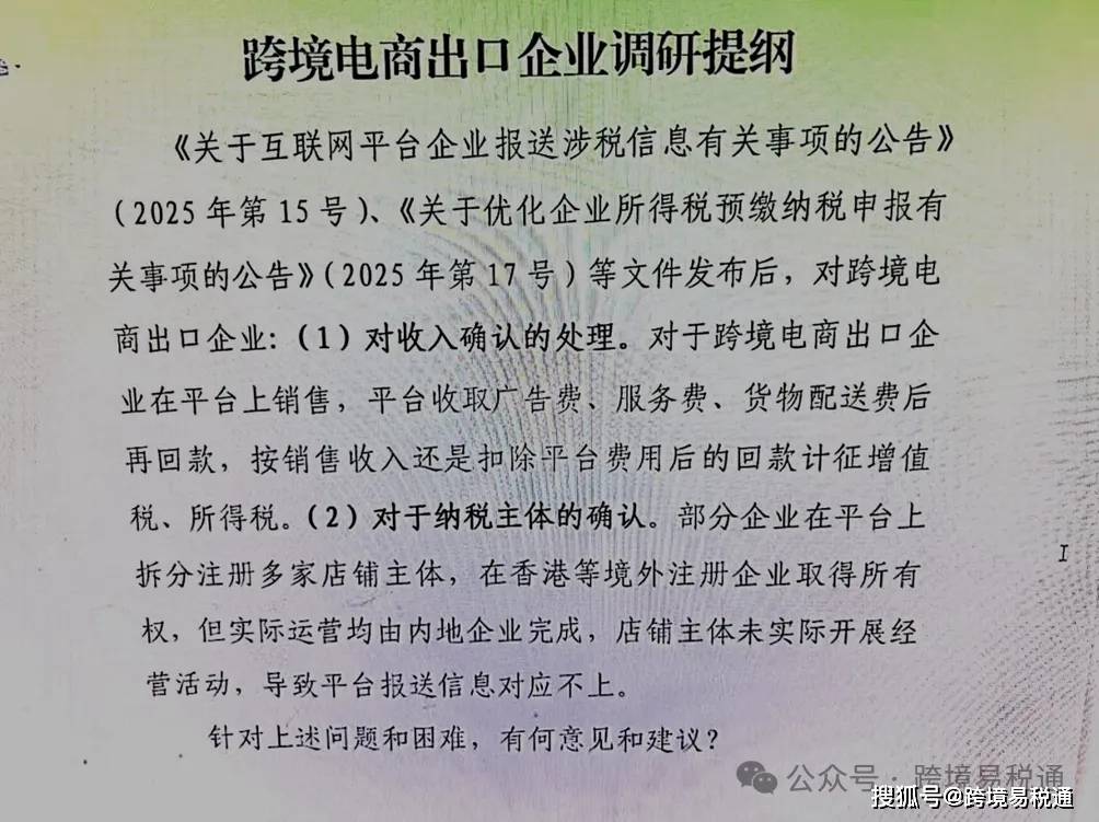 摘要:当平台数据与纳税申报"撞车",S务部门主动发出调研提纲,跨境电商企业迎来合规自救的关键窗口期。读懂政策深意、找准合规路径,才能化危 机为转机。 日前,许多跨境大卖手上都有一份来自S务部门的调研提纲,有人习惯性的反应是恐慌(最近很多大卖都成"惊弓之鸟"了)。但仔细阅读这份《跨境电商 出口企业调研提纲》后,行业资深人士却看到了不一样的信号:S务部门正在主动了解行业痛点,寻求解决方案。 平台报送数据:100美元 企业常见记账方式:40美元 我们以一个SUMMARY报告来看一下,根据关于互联网平台企业报进涉税信息有关事项的公告(2025年第15号)其中第二条第(三)条中:针对境内外 互联网企业应该报送内容规定, (1)销售货物、服务、无形资产取得的收入,包括收入总额、退款金额、收入净额等; 以一个亚马逊平台Amazon为例,目前Amazon平台给客户相关报告有两个,一个是SUMMARY REPORT报告和另一个是账期报告,现在亚马逊平台报送 的是销售总额Credits总额,约为12,023,522.54美元,而扣款只报送了销售产品(FBA transaction fee refunds)的退款,其实还有各项Ot ...