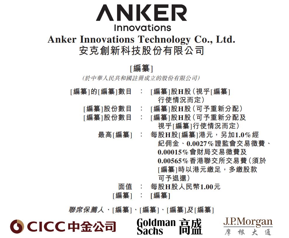 安克创新递表港交所 中金公司、高盛和摩根大通为联席保荐人