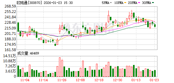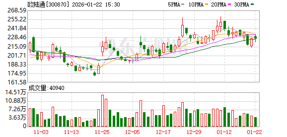 欧陆通1月22日现37笔大宗交易 总成交金额1.08亿元 其中机构买入1.06亿元 溢价率为-16.52%