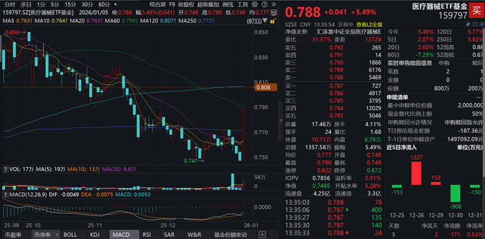 马斯克宏图的下一个篇章,2026年将大规模生产脑机接口!医疗器械ETF基金(159797)暴涨超5%,再获资金青睐!