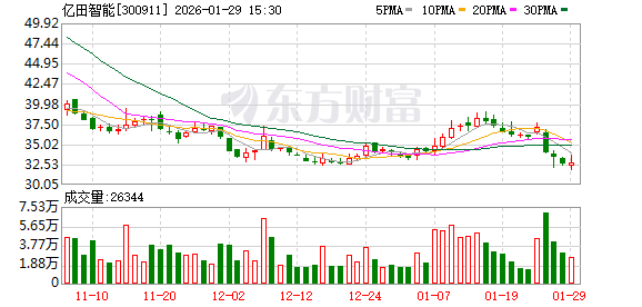 亿田智能(300911.SZ):预计2025年净亏损1.52亿元-1.86亿元