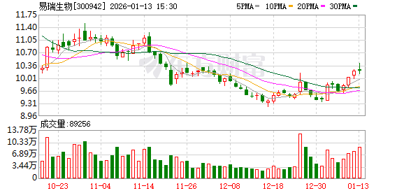 易瑞生物今日大宗交易折价成交30万股,成交额273万元