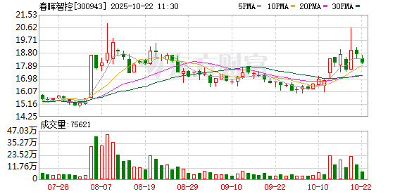 春晖智控10月20日现1笔大宗交易 总成交金额200.17万元 溢价率为-5.58%