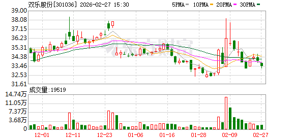 双乐股份股价上涨2.17%,2025年业绩预告净利润预减超50%