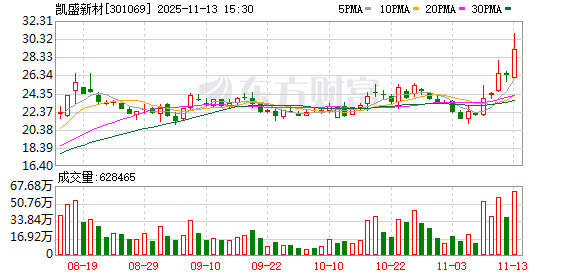 | 证券代码:301069 | 证券简称:凯盛新材 | 公告编号:2025-055 | | --- | --- | --- | | 债券代码:123233 | 债券简称:凯盛转债 | | 山东凯盛新材料股份有限公司 关于"凯盛转债"2025 年付息的公告 本公司及董事会全体成员保证公告内容真实、准确和完整,并对公告中的虚假 记载、误导性陈述或者重大遗漏承担责任。 重要提示: 1、"凯盛转债"(债券代码:123233)将于 2025 年 12 月 1 日按面值支付第二 年利息,每 10 张"凯盛转债"(面值 1,000.00 元)派发的利息为人民币 4.00 元(含 税)。 2、付息债权登记日:2025 年 11 月 28 日(星期五)。 3、付息日:2025 年 12 月 1 日(星期一)。 4、除息日:2025 年 12 月 1 日(星期一)。 5、本次付息期间及票面利率:计息期间为 2024 年 11 月 29 日至 2025 年 11 月 28 日,当期票面利率为 0.40%。 发行,募集资金总额为人民币 65,000.00 万元。根据《深圳证券交易所创业板股票上 市规则》《深圳证券交易所上市公司自律监 ...