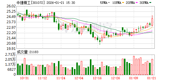 免责声明:本文内容与数据仅供参考,不构成投资建议,使用前请核实。据此操作,风险自担。 每日经济新闻 每经AI快讯,中捷精工1月27日晚间发布业绩预告,预计2025年归属于上市公司股东的净利润亏损3800 万元~5400万元。上年同期归属于上市公司股东的净利润亏损2950.92万元。业绩变动主要原因是,公司 的高强度汽车零部件智能化生产线基地项目、烟台通吉汽车零部件有限公司工厂扩建项目等项目逐步验 收,相关的设备折旧、固定费用等同比增加。虽公司整体营收规模同比有所增长,但公司部分产品价格 小幅下调因素导致毛利有所下降。此外,随着经营规模提升,公司管理及研发等费用支出同比有所增 加。 每经头条(nbdtoutiao)——国际金价冲破5000美元!7年涨了280%,什么时候才见顶?专家:关键还 看美元,重点关注国际货币体系、降息和科技革命 (记者 王晓波) ...