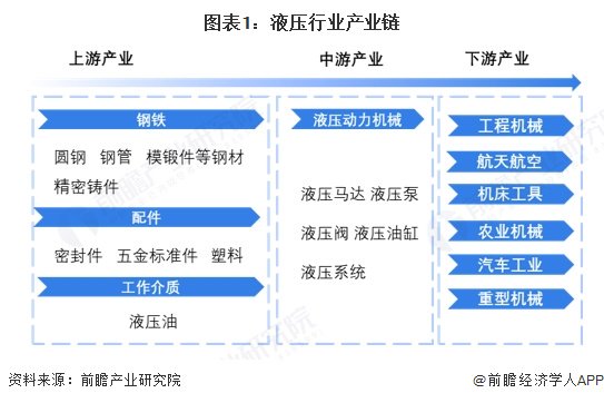 转自:前瞻产业研究院 行业主要上市公司:恒立液压(601100);艾迪精密(603638);中航重机(600765);合锻智能(维权)(603011); 邵阳液压(301079)等。 本文核心内容:液压行业产业链;液压行业全景图谱 液压行业产业链全景梳理 目前我国液压产业链上游主要为钢铁、配件和工作介质,其中钢铁包括圆钢 钢管、模锻件等钢材,配 件包括密封件、五金标准件、塑料等,工作介质是液压油;液压中游主要为液压的生产,从产品功能区 分包括液压马达、液压泵、液压阀、液压油缸、液压系统;液压的下游主要为各个大型工程领域,包括 工程机械、航空航天、机床工具、农业机械、汽车工业、重型机械等。 液压行业产业链区域热力地 液压行业的上游行业主要有三类,分别是钢铁、配件和工作介质,其中钢铁供应一般是国内大型钢铁联 合企业,包括宝钢股份、鞍钢股份、河钢股份等;工作介质指的是液压油,代表企业有康普顿、中晟高 科、统一等。 液压行业中游制造企业有恒立液压、邵阳液压、合锻智能、艾迪精密、川润股份、鲍斯股份。 液压行业下游主要是工程机械、农业机械、机床工具、汽车工业等行业,其中工程机械行业额有潍柴动 力额、中联重科、三一重工等; ...