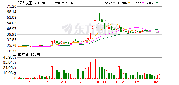 2026年2月8日,证券之星估值分析指出邵阳液压相对估值区间为34.89-38.56元,当前股价处于偏高区 间,估值准确性评级为C级,同时提到公司基本面中护城河一般、成长性较差。此外,融资余额数据显 示,截至2月10日,融资余额为2.28亿元,融资买入额2997.41万元,反映部分资金活跃度。公司近期无 重大公告,但2025年三季报显示业绩下滑背景仍存影响。 以上内容基于公开资料整理,不构成投资建议。 经济观察网邵阳液压(301079)近7日股价波动显著,呈现震荡走势。截至2026年2月11日,股价报 43.08元,近5日累计跌幅0.74%,但区间振幅达7.72%,其中2月9日单日涨幅4.48%,2月10日则下跌 3.40%。成交量活跃,2月9日换手率17.68%,单日成交金额超5亿元,显示市场关注度较高。技术面 上,MACD指标持续负值,KDJ的J线近期冲高后回落至65.16,股价当前低于20日均线(44.75元),布林 带显示压力位在49.65元,支撑位在38.81元,短期技术面偏弱。所属工程机械板块近交易日上涨 0.51%,但个股表现弱于行业均值。 近期事件 ...