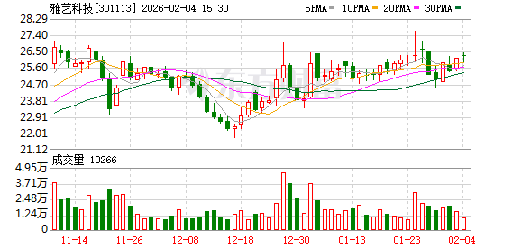 雅艺科技:2025年全年净利润同比预减28.38%—50.76%