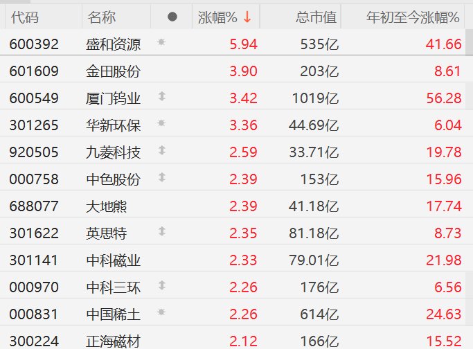 稀土概念股普涨,盛和资源涨近6%