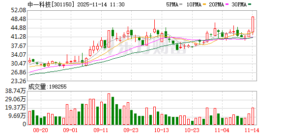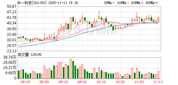 公司发布的三季报数据显示,前三季度公司共实现营业收入41.99亿元,同比增长19.55%,实现净利润 3869.67万元,同比增长156.51%,基本每股收益为0.1659元,加权平均净资产收益率1.09%。 中一科技股价创出历史新高,截至11:05,该股上涨11.04%,股价报48.38元,成交量1652.58万股,成交 金额7.46亿元,换手率7.42%,该股最新A股总市值达112.84亿元,该股A股流通市值107.69亿元。 注:本文系新闻报道,不构成投资建议,股市有风险,投资需谨慎。 证券时报·数据宝统计显示,中一科技所属的电力设备行业,目前整体跌幅为0.75%,行业内,目前股价 上涨的有174只,涨停的有奥特迅、石大胜华等4只。股价下跌的有217只,跌幅居前的有顺钠股份、方 正电机、天宏锂电等,跌幅分别为8.78%、8.73%、7.30%。 两融数据显示,该股最新(11月13日)两融余额为1.19亿元,其中,融资余额为1.19亿元,近10日减少 5440.32万元,环比下降31.32%。 公司11月11日在交易所互动平台披露,截至最新(11月10日)股东户数为19327户,较上期(10月31日)减少 ...