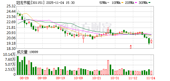 每经头条(nbdtoutiao)——大鹏工业战略配售"肥"了自家人!认购价9元,上市首日涨到118元,实控 人和亲哥哥凭配售一天浮盈2492万元 (记者 曾健辉) 每经AI快讯,冠龙节能(SZ 301151,收盘价:19.71元)11月24日晚间发布公告称,公司第二届第十四 次董事会临时会议于2025年11月24日以现场结合通讯方式召开。会议审议了《关于调整相关承诺的议 案》等文件。 2025年1至6月份,冠龙节能的营业收入构成为:通用设备制造业占比99.86%,其他业务占比0.14%。 截至发稿,冠龙节能市值为33亿元。 ...
