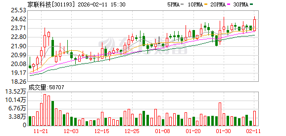格隆汇2月13日丨家联科技(301193.SZ)涨6.65%,报26.800元,股价创历史新高,总市值52.31亿元。 ...