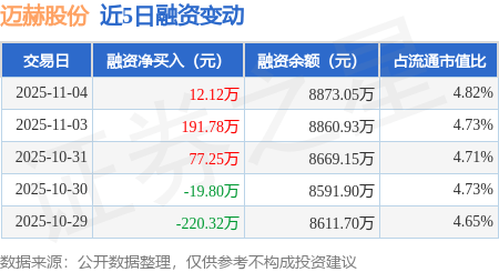 迈赫股份:11月4日融资净买入12.12万元,连续3日累计净买入281.14万元