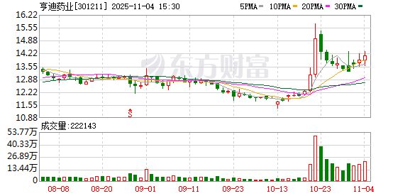 亨迪药业:截至2025年10月31日公司股东户数为20838户