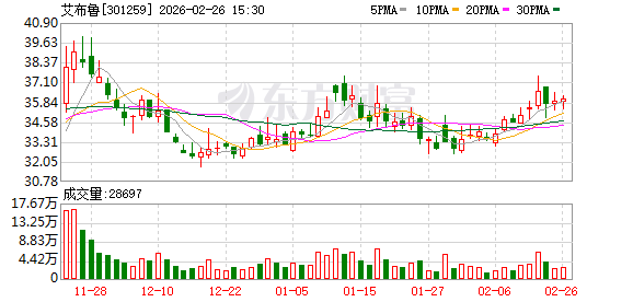 | 交易日期 | 证券代码 | 证券简称 | 成交价格 | 成交量 | 成交金额 | 买方营业部 | 卖方营业部 | | --- | --- | --- | --- | --- | --- | --- | --- | | | | | (元) | (万股/万份) | (万元) | | | | 2026-02-26 | 301259 | 艾布鲁 | 28.74 | 17.50 | 502.95 | 长城证券股份有限 | 西部证券股份有限 | | | | | | | | 公司昆山登云路证 | 公司湖南分公司 | | | | | | | | 券营业部 | | 2月26日,艾布鲁大宗交易成交17.5万股,成交额502.95万元,占当日总成交额的4.66%,成交价28.74元,较市场收盘价 36.08元折价20.34%。 ...